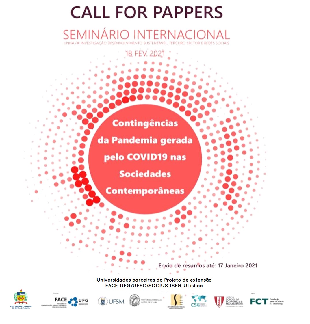 A Linha de Investigação Desenvolvimento Sustentável, Terceiro Sector e Redes Sociais do SOCIUS/CSG-ISEG – Centro de Investigação em Sociologia Económica e das Organizações, convida-os/as a participar na chamada de trabalhos para o Seminário Internacional Contingências da Pandemia gerada pelo Covid-19 nas Sociedades Contemporâneas.